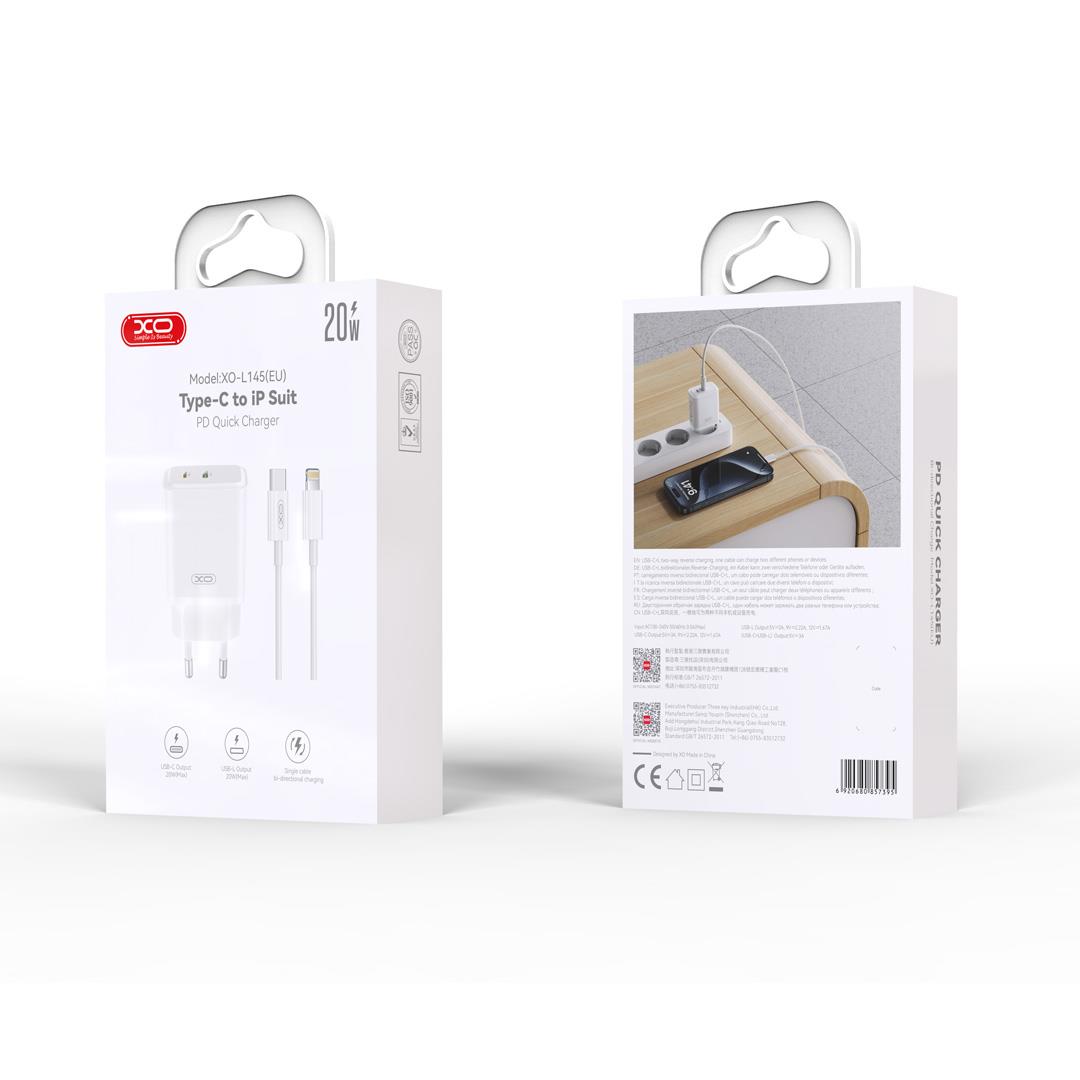 Είσοδος: AC100-240V 50/60Hz 0,5A ΜέγΠαραγωγή:USB-C: 5V/3A, 9V/2.22A,12V/1.67A 20W (Μέγ.)USB-L: 5V/3A,9V/2.22A,12V/1.67A 20W (Μέγ.)USB-C+USB-L:5V/3A Μέγεθος προϊόντος: 40,5*27,6*80,7±2mmΒάρος προϊόντος: 50gΥποστήριξη πρωτοκόλλου: PD3.0/FCP/AFC