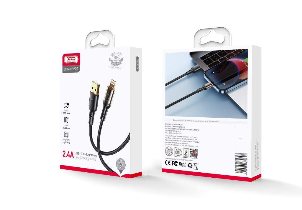 XO NB229 ΚΑΛΩΔΙΟ ΦΟΡΤΙΣΗΣ LIGHTNING, ΔΙΑΦΑΝΟ ΒΥΣΜΑ, ΜΑΥΡΟ