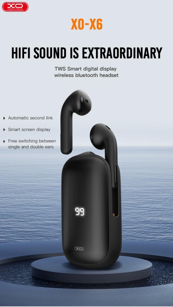 XO X6 ΑΚΟΥΣΤΙΚΑ HANDSFREE BLUETOOTH TWS, ΜΕ ΟΘΟΝΗ, ΜΑΥΡΑ