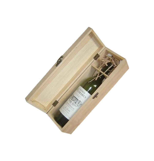Ξύλινο αλουστράριστο κουτί για 1 φιάλη κρασί από ξύλο παυλώνιας